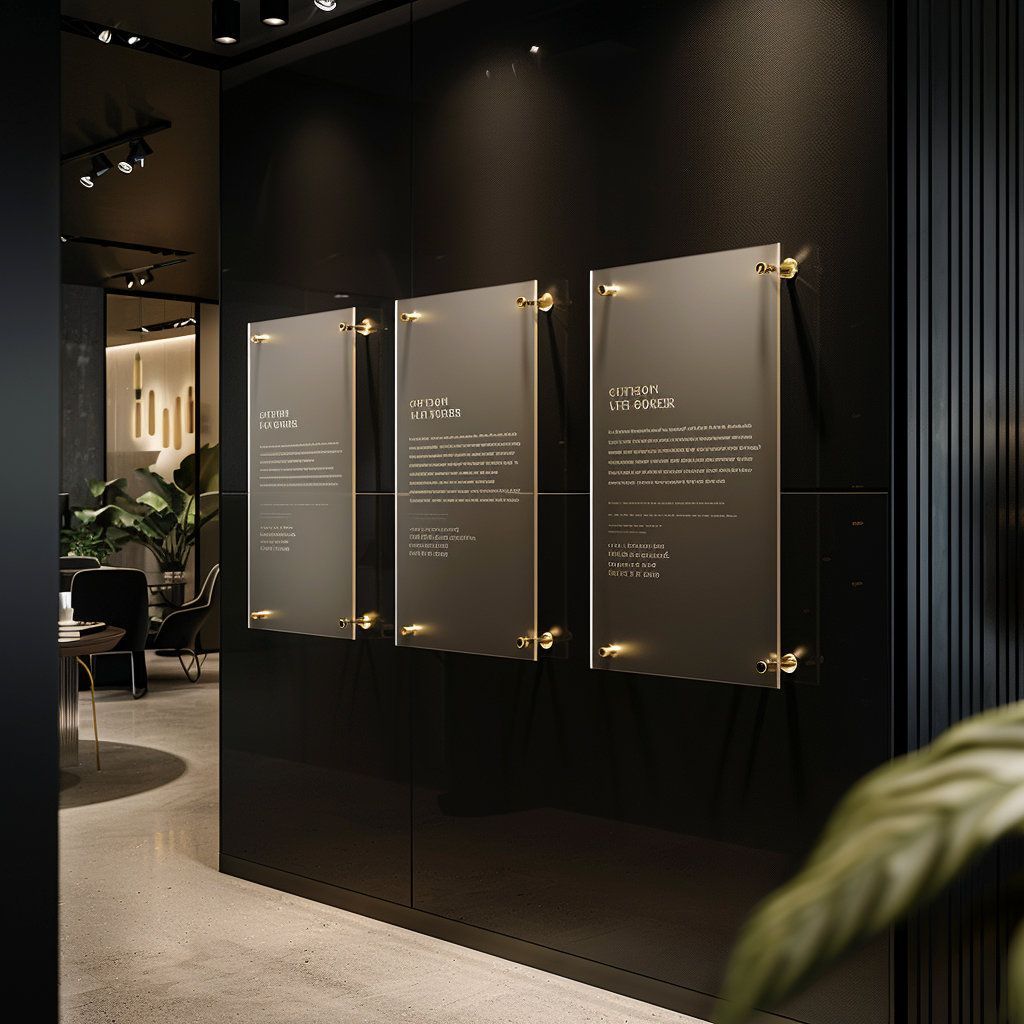 • **Prinç Kapı İsimlikleri:** Daha klasik ve prestijli bir görünüm için tercih edilir. Lazer kazıma ile yazı ve logoların işlendiği, şık ve lüks bir ofis atmosferi yaratır.