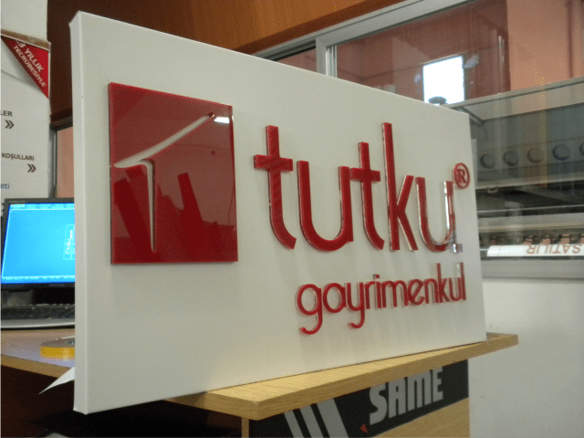 **Kabartma Harf (3D)** Pleksi, Dekota gibi kalın malzemeler Tabelaya **üç boyutlu (3D) derinlik** ve gölge efekti katar.
