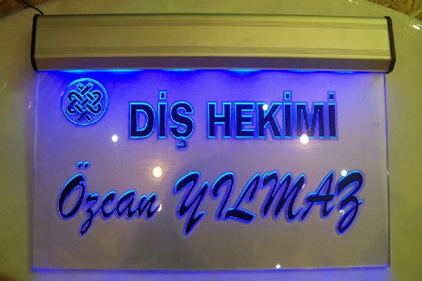 • **Pleksi Kapı Tabelaları:** En popüler modern seçenektir. Lazer kesim ile istenilen formda hazırlanır ve genellikle alt zemine kabartma harfler veya arkadan folyo / UV baskı ile uygulanır. Şeffaf veya renkli pleksi seçenekleri mevcuttur.